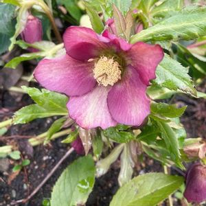 4番目に咲いた地植えのクリローさん🌸 この子も最初にお迎えした3種類のうちのひとつ 赤紫?ピンク?の花びらが少しフリフリ 何気にお洒落さん💖 というか、この子たち全員お洒落さんですね😊 蕾もたくさん付いているのでこれからが楽しみ〜💕