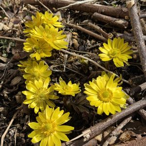 母庭に福寿草が顔を出しました。 毎年、一番咲は福寿草 母庭にいろんな色が戻ってくるぞ〜 追伸 去年も同じ日に福寿草アップしてたわ😆