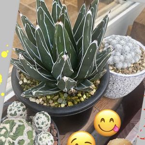 ハンバーガー屋さんのディスプレイです🪴 アガベ笹の雪✨サボテン🌵姫春星ですよね👀♡手前のサボちゃんお名前は?♡♡あ〜カワユ😆連れて帰りたいわ…😝🎶 🏷️毎月7日はアガベの日