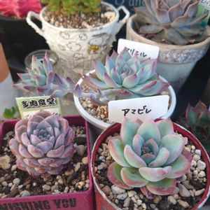 今日のお昼も猛暑 止まらずでした☀️.° 1⃣トックリラン (ポニーテール) 植え替えしたので 葉っぱの緑濃くなりました🪴 2️⃣ずっと植えっぱなしの ブロウメアナ🤭 紅葉じゃなくて・・・ 栄養不足の色です😅 3️⃣いちごの日 1日遅れです(,,>᎑<,,)♡ ピンクウィッチ また元気でてきました🩷 イチゴマンとリンゴマン 🍓🍎•*¨*•.¸¸♬︎ 4️⃣数少ない夏越し成功の エケベリア🩷🩷 オアシスさんからの 🍓編み編み添え🩷 5️⃣名無しの権兵衛さん 解体候補です🤭 🏷毎月16日はトトロの日 🏷毎月15日はいちごの日 🏷1日遅れてめんごめんご