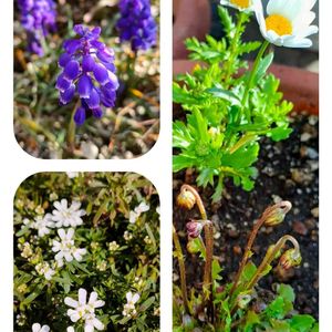 🌸🐝春ですね あれこれ咲いてきたので 投稿がおっつかないわ😉 🌸ムスカリ 🌸イベリス 🌸ノースポール 🌸桃色たんぽぽのつぼみ