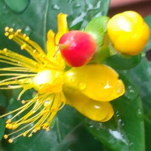 🫒ヒペリカム🫒 蕾、花、実 3つ揃いました。