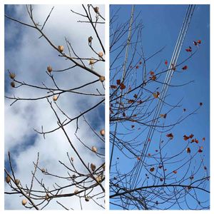 真冬の青空高くそびえる「ユリノキ」の翼果、こんなにたくさんの花が咲いていたなんて今更ながらビックリ❣️ 5月頃チューリップのように大きくて素敵な花が咲きますが、高い枝の茂った葉っぱの間に咲くので気付きにくいのが残念です❣️ 魅力的なユリノキの花は5/2 にpic しているので是非ご覧下さい。😊 チューリップのようなのにユリノキ、大正天皇が皇太子の頃に小石川植物園を訪れ、日本最古のユリノキを見て「ユリノキ」と命名したようですが、その時代にはチューリップはなかったのでしょうか?😱