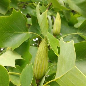 ローソクのような実がいっぱいです。全て上向き! ユリノキ(百合の木)モクレン科ユリノキ属の落葉高木 5~6月頃、チューリップに似た大型の花を咲かせる。 大形の花は、たくさんの蜜を出す(ユリノキ蜜) 花がつくのは、植えてから8~10年ほど経つと咲き始める。 独特の葉の形から、半纏木、軍配木、奴凧の木など、様々な別名がついた。黄葉も美しい。 新宿御苑の「イギリス式庭園」に有るのが、明治6年頃に輸入された日本最古のユリノキ。 東京国立博物館のシンボルはユリノキ。公式キャラクターは「ユリノキちゃん」