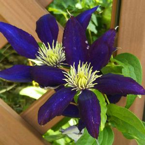 おはようございます👋😆✨ オベリスクで咲いていたクレマチス💜 剪定して塀に🔰初誘引ダンゴ状態😣😵 青春は密⚾花も密💠😜😝