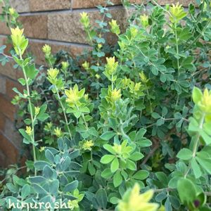 おはよーございます♪😊🎶 庭先のブラキカムが蕾を付けて クローバー🍀💜💛♣️とのコラボ