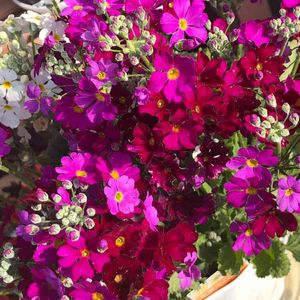 プリムラマラコイデス うぐいすシリーズ ホワイト、ローズ、レッド、の3種類を育てています🌸 ホワイトとレッドは毎年安定の咲きっぷり❤️ローズは今年初挑戦☺️ マラコイデスの育て方…しつこいようですがまた投稿😅 マラコイデスは水切れに弱いので土をカラカラに乾かさないで管理してくださいね。 土を触ってみて、もう少しで乾きそうだなって時が水やりのタイミングです。パンジービオラと同じく「乾と湿」のメリハリ水やり法では、水切れを起こして枯れてしまいます🙅♀️でも土がしっかり湿っている時は水やりはいりませんよ☺️そろそろ乾きそう…!のタイミングを見てあげてくださいね🌸 マラコイデスはたくさんのお日様を必要としません。半日陰がちょうど良いです。 午前中だけ日が当たり、午後からは日陰になるような場所でも十分育ちます。耐寒性があるので霜が降りても大丈夫🙆♀️神奈川県の我が家では防寒対策なしです。先日の寒波ではカチコチに凍りましたが翌日には元通り✨ 水やりのコツさえ掴めばあとは放ったらかしでよく咲くお花です。 陽当たりが悪くても育ち、何より1株100円程とお安い!! 私は秋に植えましたが、今もまだ園芸店やスーパーのお花コーナーでマラコイデスを見かけます。春の満開は本当に見事なので…あの感動を皆様にも経験してほしいです🥺💕一緒に育ててみませんか?