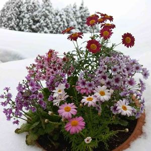 おはようございます😊 今日も雪❄ 家の窓際の廊下 がんぎ?! お花でいっぱいで 足の踏み場が無い😆 尻もち付いてお花を潰さないようにしなきゃね😜 一発だわ😁