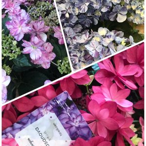 昨日のお花屋さんで見つけた紫陽花。 最近はカーネーションより紫陽花や寄せ植えみたいなのが人気だそうです。 紫陽花もこの絞りの入った感じも好き😘 でも、赤い八重みたいのも可愛い🥰 紫陽花も迷いに迷って決められず普通に苗を買っちゃいました。