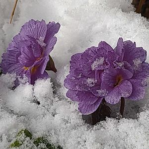 こんにちは😊 朝目覚めたら雨音☔ホッとして起きて少ししたら雪になりました❄ ずっと降り続き昼に積雪10センチほど⛄️ まだ降っています😶 ①②雪に埋もれたビオラ💜🧡 ③枝垂れ桜、後1ヶ月くらいで咲くかな🌸 毎年🌸の時期に一緒に花見に出かけていた人生の先輩が先月逝ってしまいました。 ご主人から昨日連絡いただいたばかりで先輩が居なくなってしまった実感はありません。。。先輩と言ってもいつも花友🌸 彼女との思い出は花でいっぱいです。 今年も花見に行こうとラインしたら返信が来そうな気がします♡ 皆さまご自愛くださいね❣️
