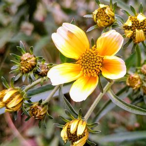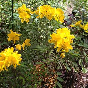 こんにちは😌 ⛅️からの☔今夜は月が観れませんね💧 ハナセンナ開花しました🧡可愛い〜🧡 ②八重白秋明菊開花🤍綺麗ね〜✨ ③ブッドレア アナベルの陰でみっけ👀💜 ④ミゾソバ ⑤コヨメナ 隣の田んぼの土手に咲いています♪
