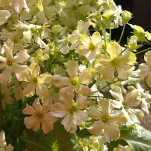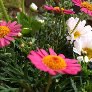 こんにちは😆 朝0度〜最高気温18℃予報でしたが、雲が多くパッとしません⛅️ 今日のお花 マーガレット ①1月挿し穂したマーガレット ② ①の元株は軒下で防寒しながら冬越し ③ ①ピンクとクリーム色のマーガレット を昨年秋に挿し穂したこたち🩷🧡 花芽はまだです。 ④ 庭の梅の花まもなく開花✨🤍✨ ⑤ 2月にお迎えしたストック✨🤍✨ 今週も健やかに過ごせますように✨
