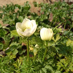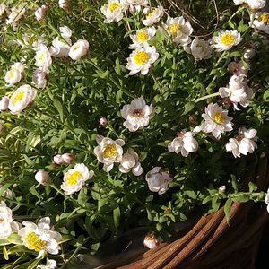 こんにちは😊 静かな朝でしたのに先ほどから強風🌀🌀 怖いくらいの突風が時々吹き荒れています😣 ①アネモネ 可愛らしいけれど、、 足踏み揃わないな〜🤍🤍 ②梅 開花✨いい香り✨ ③オキナソウ 1輪開花しました💜 ④⑤庭のクリスマスローズ