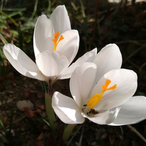 こんにちは😊 ⛅️穏やかな日。明日の朝は−1℃予報🥶 また夜は防寒しなくちゃです😅 ①クロッカス純白開花✨🤍✨ ②オキナソウのつぼみふくらんできたよ💜 ③ジュリアン💙また咲いてきました🎶 ④美しいな〜クリスマスローズ💚🤍💚
