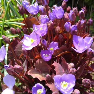 こんにちは😊 ☔〜☁〜🌀気温は高めなので植物たちの成長著しいです🎶 ①ヒュウガミズキ 3年前花友に託された花(鉢植え) ②ヒメリュウキンカ 今年も会えたね🧡 ③ネモフィラ こぼれ種からの開花👍😆 ④ブラキカム 鉢植えで冬越しできたよ💜 ⑤クリスマスローズ アネモネクィーン (鉢植え)