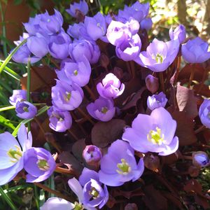 こんにちは😊 穏やかな小春日和に植物たちの成長著しい✨✨♪♫♬✨✨ ①懲りもせず今日のタツタソウ ②オキザリスパープルドレス やっと開花 ③ヒヤシンス 花、少な!! ④⑤シラー🤍💙 ちっちゃ🥳