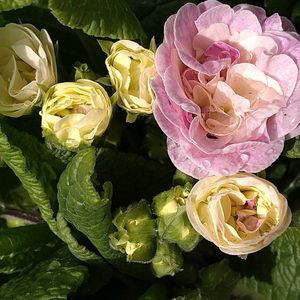 こんにちは😊 風が冷たいですが時々☀陽ざしに植物たちが輝いてます✨✨✨ ①タツタソウ 開花\(^o^)/💜🩷💜 ②ロベリア 昨年のロベリア挿し穂開花💙 ③アケビ 花芽がかわいい〜💓 ④紅稚児 花芽がたくさんで嬉しい〜♪ ⑤乙女心 色合いがかわいいな〜💓 週末も健やかに過ごせますように✨♡✨