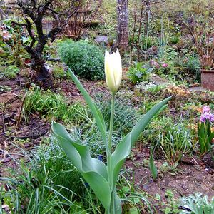 おつかれさまです😊 すみません🥴見てください🎶 雨上がりの庭 チューリップいちばんのり(植えたまま毎年咲いてくれます) 枝垂れ桜 今日のラックスたち✨✨✨