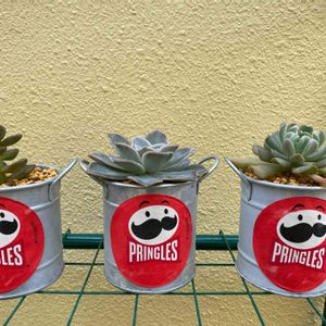 プリ○グルス3兄弟🥸 これラベルとして貼ったらかわいいかも!と思ってポテチ一気喰い🐷💨底穴あけてラベルには防水塗料を塗ってみました😀 #多肉植物