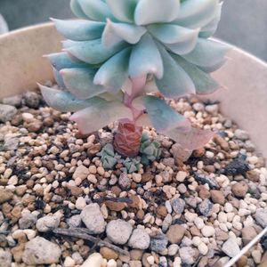 子吹き中のトップシータービー 葉挿し率もよく、増えすぎてあちこちに地植えしました。 まだ、待機しているので、もう増やしません…🥺