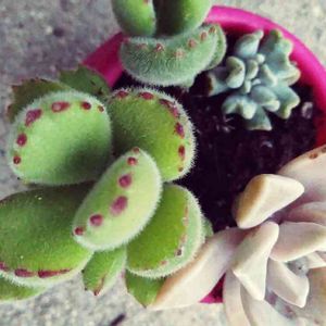 熊童子やっと見つけました😘 メルカリでポチッとしようかと思ってたけど、近くの苗屋さんでこのセットが280円‼️ ポチッとしなくて良かった😆 少し元気がなかったので日陰で養成中😪💤💤