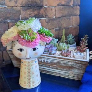 ~素敵なあの子❤️シリーズ~ 第26弾 結婚式でもらった花束💐を あの子ちゃんに、アレンジして 飾ってみました💛💚💛 やっぱり、華やかなのが、 お似合いね🎵✨✨✨😆 それにしても、お花生けるの ホント、難しすぎる〰️💦💦 😥😖😩😵😫