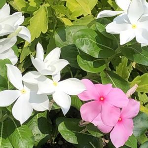 日々草🤍🩷 庭花 台風の雨後に元気が出てきた。大きめの花🌸(^^)♡