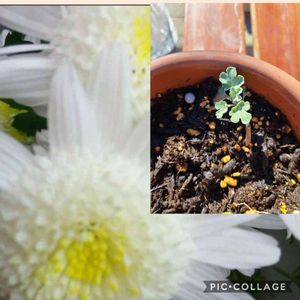 「菊の挿し穂」 菊の挿し穂をしたら根付いた様で、葉っぱがしっかり見えてきました。 菊の名前は分からないけど、花はこれだそうです。 香りが強いそうです。