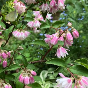 サラサウツギを迎えました💗 検索するとサクラウツギでも出てきます。 羽付きの羽のようです。可愛い💕 バドミントンのシャトルにも見えます💕 園芸店で見た時、モンシロチョウが何度も 蜜を吸いにきていました。 蝶が好きな花、お迎えです(^_^)