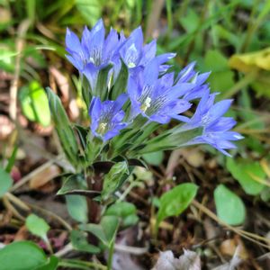 〈フデリンドウ〉 山に春の花が咲き始めました✨ 毎年楽しみに待っていたフデリンドウ💙 今年は少し開花が遅れたけど、あちこちに 顔を出しています🤩 曇りや朝早いと開いていないので、 晴れた時間に見に行っています🚶♀️ 花束みたいなフデリンドウを見つけました👀✨ 青い小花が可愛らしい💕