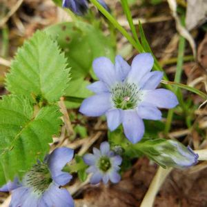 こちらは春に咲くフデリンドウ 見落としてしまいそうな、小さく可愛いお花です 周りには、桜の花びらが散っていました(∩ˊᵕˋ∩) .゚♡ 2016年5月1日撮影