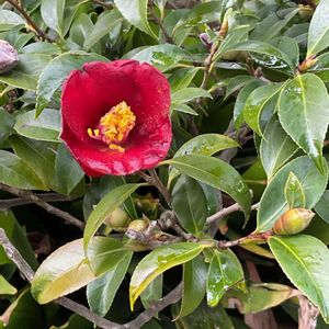 うちの椿🌺も 咲き出しましたが、 例年より 少し遅かったよう〜な気が します〜❗️ 今日は 暖かい☀️ 春が 来たよう〜な感じ💓🎶 パンジーさん マリア・ブルーオーシャン、ずっと 冬の間 縮こまっていましたが、やっと 咲き出しました〜💖✨✨