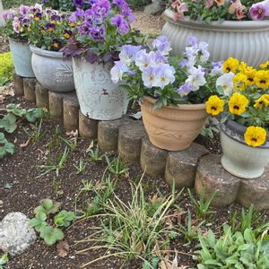 晴れました〜☀️ 少し 涼しいぐらいが、パンジーや ビオラには 良いんでしょう〜ね💓 花壇のブロックの縁に、パンビオさん達の 小鉢を並べてみました〜❣️ 2枚目は、マリア ブルーオーシャン💙 急に、花芽が いっぱい 上がって来て、ビックリです〜💕 3枚目、とにかく どのビオラさん達も 最高の季節 到来💖✨✨ たくさんの小花🌸を 咲かせてくれています〜💓💓💓🎶