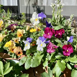ベランダに咲くお花💐 冬知らず パンジー カレンジュラまどか オーロラ にじのたま