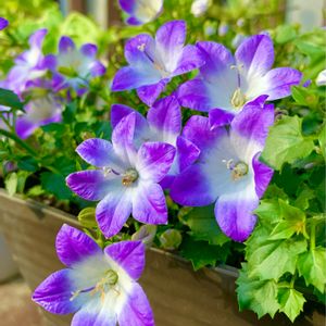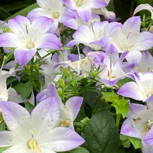 「カンパニュラ ファンシーミー」💜 沢山の花が綺麗に咲いて😊 紫と白のバイカラー💜🤍が 可愛いです(⁎⁍̴̛ᴗ⁍̴̛⁎)🍀✨