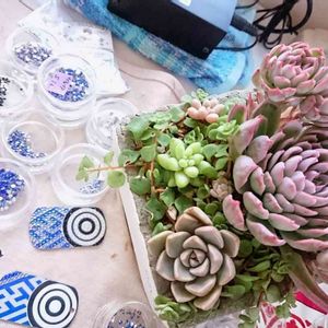 今、秋に違いない☀️😵💦 って思うくらい暑かったです福岡。 シワシワの子に流石に水揚げました💦 夜気を付けなきゃ( ̄▽ ̄;) さてこのチマチマが出来るのにみっちりチマチマ 多肉寄せ植えが出来ません😱😱 なので寄せでは無いですが自分ではこういうの 【野原寄せ】と呼んでます。 読んで字のごとし、、野原にポツンとかガツン1点とか?(笑) そういうの結構好きです( ・`д・´)キリ 今日は近くに癒しがあるとはかどるかな?って思い 目の前に置いてオーダーされたブツを作ってみたら 見事にはかどりました‼️マイナスイオン最強♪(´ε`*) しかし材料切れで中断😱😱明日仕事😱😱あーー😢💦 あと最後に、、ハズキルーペ最強( ・`д・´)キリ