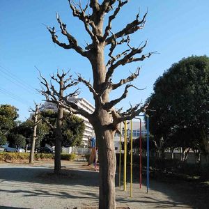ユリノキ 冬の日の裸木 友との花散歩。 「この葉は、ユリノキだね。花が楽しみだね。」そんな話が出たから、覚えていたよ。 ユリノキだって。 こんなに刈り込まれたらね、花は咲かないね。 ほんとうなら、花芽を抱いてるよね。 残念だな😣😣😣😣😣