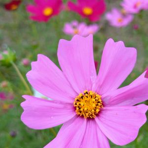 公園⛲️人がいっぱい〜〜 今日は日曜日だった…☘🎃*゜ ①〜④ コスモスが咲き始めてた ⑤ 絞り咲きのポーチュラカ 久しぶりに遠くの公園🚙=3 曇り空の下、賑やかな人混み いろんな催し物🎪気分転換✨☺️
