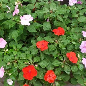 種から育てたインパチェンスがやっと咲き揃いました。夏の日向はにがてな植物なので半日陰に置いていました。 無農薬なのでイモムシにやられたり、根腐れしたのでやっとです。