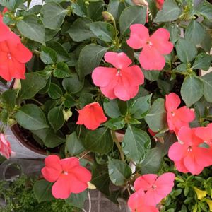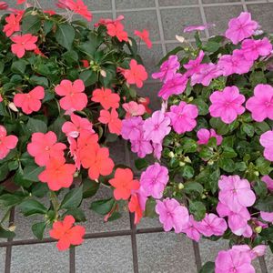 。:°ஐ*。:°ʚ♥︎ɞ*インパチェンス。:°ஐ*。:°ʚ♥︎ɞ* こぼれ種から育てたインパチェンス 花数が増えてきました。 こぼれ種からの苗も待機中なのでそろそろ定植です。