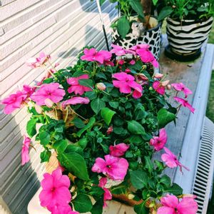 GSデビューからあと 数日で丸一年 デビューした原点の インパチェンス🌸 吊りハンギングの予定が … 強い陽射しには 弱く💦 日陰を好むこの子達💦 吊りハンギングと スリット入り壁掛け ハンギングも無理💦 とりあえず 鉢に入れて レイアウト中…… なんかしっくりこない💦… 時間だけが刻刻と 過ぎて🤣焦りぎみに なってきました😖
