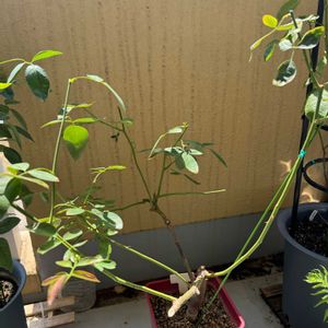 あかん!暑過ぎやろー💦💦💦 てか、真昼間に出る私がおバカ。 京阪園芸さんの動画では、 夏剪定に早い大阪の気温。 その前の仮剪定で出たら、 20分もせず、ドロップアウト。 (てか、室内イン) なんでもプロは、咲くのが遅い順な 剪定するとか・・ 1.1番の大苗の爽。 1番咲くのが遅く、セールで買った 大苗だったので枝ぶりが悪い👎 どんぐり剪定というのか? リセットしたくなる暴れた枝ぶり。 とは言っても葉っぱが少ないので 役10センチほど、ピンチ。 爪楊枝サイズも切ってやった。 2.それに対して今春新苗で 買ったブルーインパルス。 とっても素直に育ってます❣️ まだ、色目見るのにひとつ 咲かせただけで、摘蕾続けてます。 なので、軽く10センチ以内のピンチ 室外機上に置いてるブルーバユー 1.2を争うくらいに元気な子 すぐに新芽出てポンポン咲こうとするので、20センチ程切りました。 要らん脇芽も切ってやったwww 1番スッキリ❣️ あとは元気のないイングリット、 ガブリエル、フレンチレース は、新芽だけピンチ。 ステンレス、Mentaも元気でてきた頃なので先っちょだけ。 で、暑くて、慌てて辞めました。 バラの剪定って、毎回悩ましい。 25℃前後っていつになる? 誕生日に咲かせたいので マイナス50日計算すると10月4日?は、遅すぎるので、 その10日前に、本剪定するか・・ うーん🧐とは言え自然の事。 虫の事もあるので、気温と 葉っぱの生育見てだな・・・ ロザリアンの方、どう されてるのかしら?