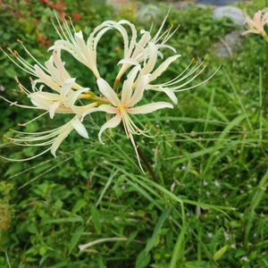 我が家の白色彼岸花が咲き始めました😂まだ、3本ほど…今年は少ないのかな…