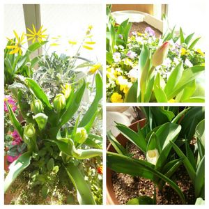 今日は暖かいですよ☀️上着を着なくてもベランダでお花の手入れをすることができました🎵 チューリップ🌷が開花しました🎵 右下が一番に咲いた白色の🌷 右上は赤色の🌷みたいですね。 左は黄色の🌷のようです。 これからが楽しみです🥰