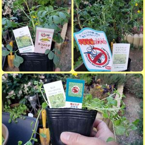 届いた3苗 ①蚊よらずハーブ:アルテミシア・サザンウッド ②ネコよらずハーブ:ルー ③アリよらずハーブ:ペニーロイヤルミント
