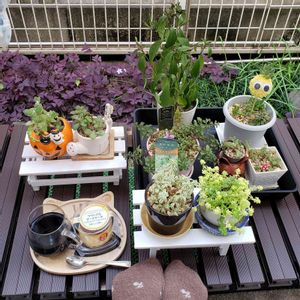 今日は久しぶりに1日お休みでした。 天気も良くて、暖かかったので、水やりがてらベランダの多肉チェックです。 朝晩の気温がだいぶ下がってきたので、そろそろ屋内に入れなければならないのですが……もうちょっと我慢してもらいます。 とりあえず、色々整理したり、植え替え考えたり……。 いつも冬には部屋の中なので、かなりの数が調子悪くなるのですが。 今年は植物用育成ライトを導入! まあ、効果の程は来年の春まで分からないんですがね。 ……一年中外に出せて置ける地域に住みたい……
