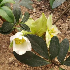 クリスマスローズ 蕾が開こうと頑張ってます🤗 はじめから咲いていた1つ 蕾から開花した1つ そして咲こうとしている1つ