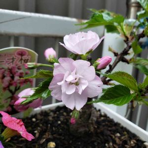 一才桜🌸 夕方のこと ベランダに 洗濯物を取り込みに出たら 朝は蕾だった桜が咲いてました🙌