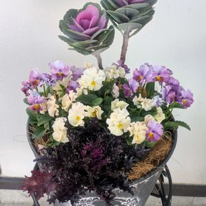 おはようございます😊 葉牡丹の寄せ植え 久しぶりに寄せ植えをしました☺️ 葉牡丹光子さんと他の葉牡丹とビオラのファルファリNo.24を入れてみました💜🩷💜