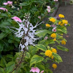 ネコノヒゲ💕 ご近所さんのいつもの場所に今年も咲いてました🤗👍️💕 この形が好き〜😍💕👍️ 花壇では失敗したから、ここで見て楽しもう😅 2025.9.17